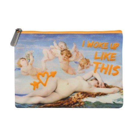 Płaska Kosmetyczka, Saszetka - Masterpieces - I Woke Up Like This Dowcipna kolekcja Masterpieces pełna toreb, akcesoriów i artykułów papierniczych inspirowana dziełami malarstwa światowego, która przedstawia obrazy znanych malarzy opatrzone inteligentnymi cytatami nawiązującymi do życia codziennego. Neonowe kolory cytatów i krawędzi kartek oraz napisy w stylu graffiti , sprawiają, że jest to kolekcja, którą będziemy cenić przez wiele lat. INFORMACJE O PRODUKCIE: Kosmetyczka zapinana na suwak. Świetnie nadaje się na siłownię lub na weekendowy wypad. Materiał, z którego została wykonana przypomina płótno malarskie.