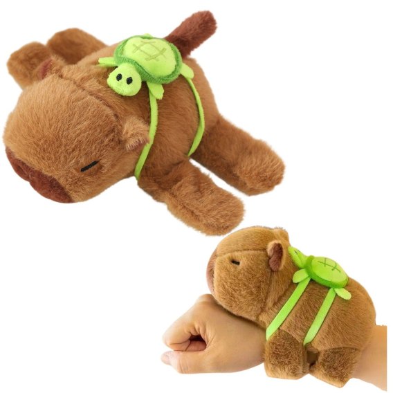 Pluszowa Kapibara Z Żółwiem Opaski Na Nadgarstek Rękę 2w1 Brązowa 18cm