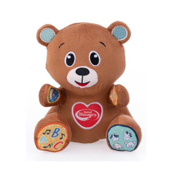 Uroczy pluszak zadba o edukacyjną rozrywkę najmłodszych! Każda z misiowych łapek aktywuje inne dźwięki, a drugie naciśnięcie tej samej łapki pozwala wyłączyć dźwięk, bez konieczności wysłuchania go do końca. Miś zna kołysanki, potrafi recytować wierszyki, śpiewa piosenki o literkach oraz kolorach, a także odtwarza odgłosy zwierząt wraz z melodią. Zabawka nie tylko więc bawi, ale też uczy, aktywizując malucha lub go wyciszając, w zależności od tego, którą łapkę wybierze.