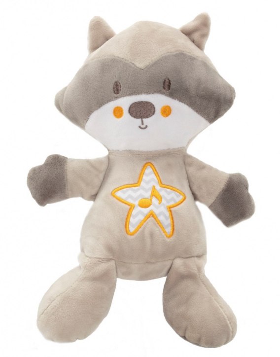 Ta rozkoszna przytulanka - miękki pluszowy miś szop o wielkości 18 x 30 cm - gra i świeci, jest odpowiedni dla dziecka już od pierwszych dni życia. Jego miękkość oraz przyjemne, uspakajające melodie stymulują u dziecka do rozwój zmysłu słuchu i dotyku. Przytulanka przyspieszy jego zasypianie, sen będzie przyjemny a dziecko będzie czuło się bezpiecznie, nawet jeśli nie będzie Cię w pobliżu.