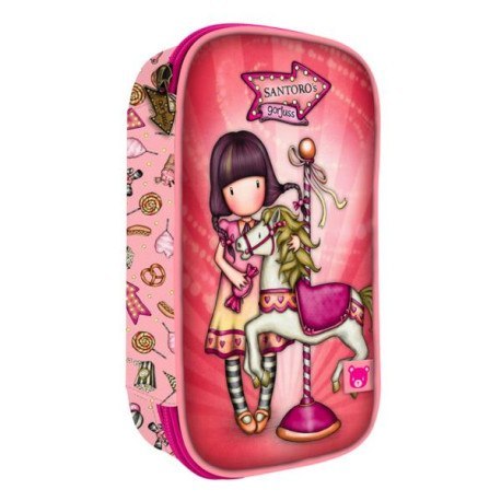 Rozkładany, 4-Częściowy Piórnik z Wyposażeniem - Gorjuss - Carousel Firma Santoro London to producent niepowtarzalnych produktów, które zachwycą każdą dziewczynkę i niejednego dorosłego! Marka znana jest na całym świecie, a produkty sprzedawane są w najbardziej znanych i prestiżowych butikach . W najpopularniejszej z ich kolekcji - Gorjuss - znajdziecie przepiękne torebki, portfele oraz portmonetki, oryginalne artykuły papiernicze (notatniki, pamiętniki, długopisy, ołówki) oraz niepowtarzalne lusterka, balsamy do ust, szkatułki i wiele więcej! Kolekcja Gorjuss to wspaniały pomysł na wyjątkowy prezent z każdej okazji! Charakterystyka Fantastyczna seria Carousel ozdobiona jest dziewczynką Gorjuss z uroczym konikiem utrzymana w słodkich różowych kolorach. Na odwrocie fajerwerki, kolorowe girlandy, cukrowa wata - wszystko co znajdziemy w wesołym lunaparku. Piękny piórnik z bogatym wyposażeniem będzie Ci towarzyszył przez wiele lat. Zawiera ołówek HB, komplet 3 długopisów kulkowych w trzech kolorach, gumkę i temperówkę. Na specjalnej usztywnionej wkładce umieszczono bogaty komplet 18 kredek. Po otwarciu rzepów znajdziemy linijkę, ekierkę i kątomierz. Na dnie komplet 18 flamastrów. Każdy element wyposażenia posiada logo Santoro. Wykonany ze szczególną dbałością. Wewnątrz posiada ciekawy wzór. Wspaniały na prezent. Wymiary: 12,5 cm x 22 cm x 6,5 cm. Zabawna kolekcja Fairground pełna plecaków, akcesoriów i artykułów papierniczych, która nawiązuje do tajemniczych przygód przeżytych w Wesołym Miasteczku pełna fajerwerków, karuzel, beczek śmiechu, huśtawek i zdobywanych nagród. Zabawne pompony, wzory pełne smakołyków czy metalowe zawieszki przeniosą nas do barwnego świata Santoro, pełnego niespodzianek jakie nas czekają w lunaparku. To kolekcja, którą będziemy cenić przez wiele lat. Podążaj za dziewczynami, bohaterkami 4 serii: Up & Away, Fireworks, Carusel i First Prize i odkrywaj ekscytującą kolekcję cudownych smakołyków! 1046GJ09