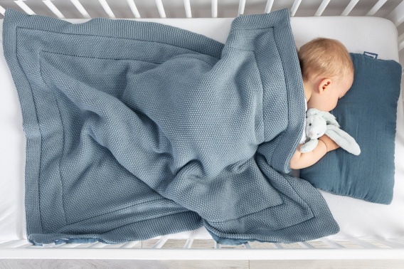SENSILLO KOMPLET DO ŁÓŻECZKA DZIERGANY Z MUŚLINĄ - NIEBIESKI