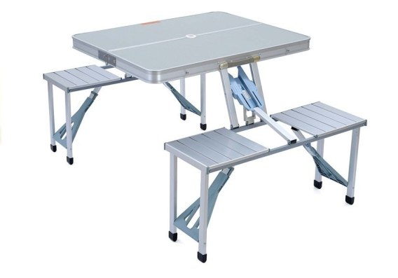 Wygodny i praktyczny, zestaw dla 4 osób składający się z stolika oraz 4 siedzisk.