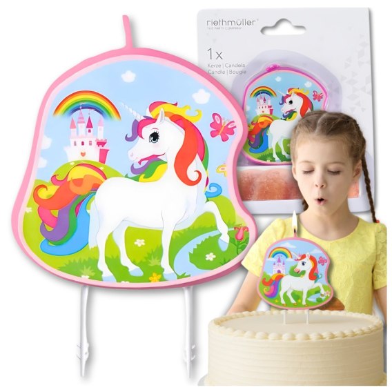 ŚWIECZKA URODZINOWA Z JEDNOROŻCEM KOLOROWA DEKORACJA TORTU DLA DZIECI