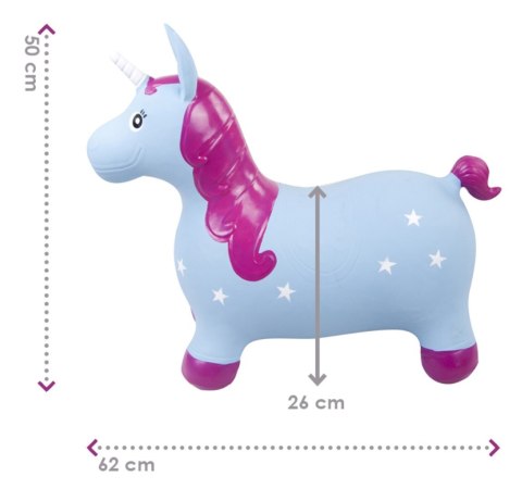 Skoczek gumowy dla dzieci JEDNOROŻEC 60 cm niebieski & róż do skakania z pompką