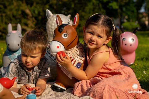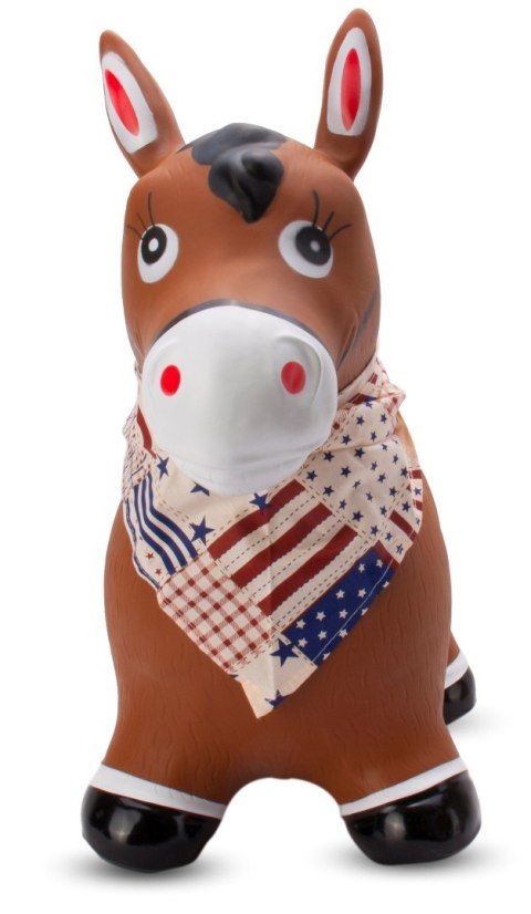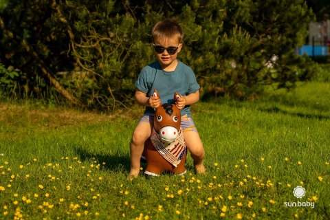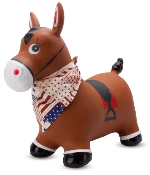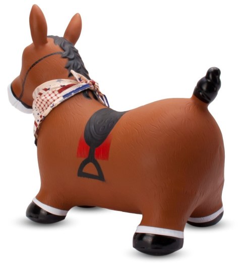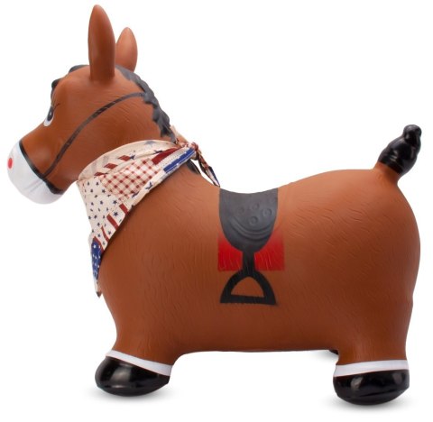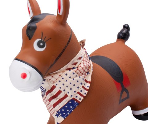 Skoczek gumowy dla dzieci KONIK 58 cm brązowy z bandaną do skakania z pompką