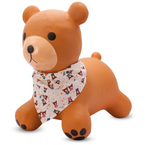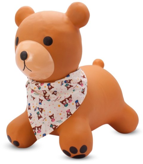 Skoczek gumowy dla dzieci TEDDY 52 cm brązowy z bandaną do skakania z pompką