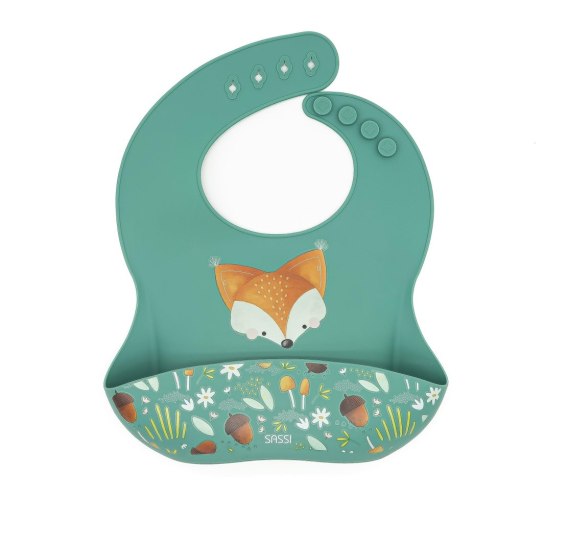 Śliniak silikonowy z kieszonką Lisek SASSI