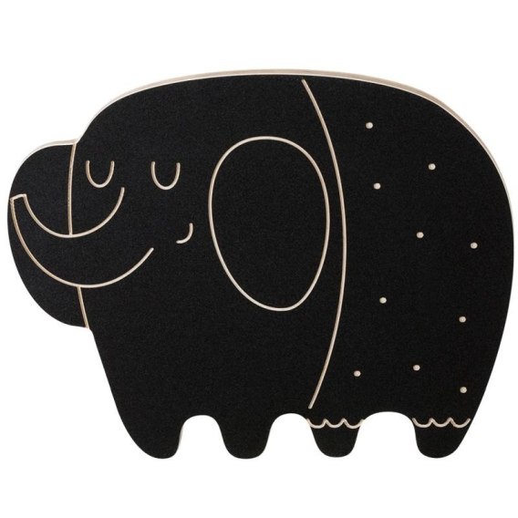 Do każdej tabliczki dołączona jest kreda w czterech kolorach. Tabliczka z jednej strony jest pokryta farbą tablicową i posiada wygrawerowane elementy, z drugiej natomiast jest biała.
