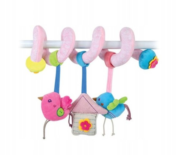 Kontrastowa spirala w magiczny sposób łączy walory rozrywkowe i edukacyjne. Aż roi się tu od niespodzianek. Kontrastowe kolory pobudzają zmysł wzroku malucha, a zróżnicowane faktury materiałów, zmysł dotyku. W pluszakowych kształtach, kryją się gryzak, piszczałka oraz bezpieczne lustereczko do samopoznania bobaska. Doczepiony do spirali gryzaczek przyniesie ulgę ząbkującym dzieciom. Spiralę bez trudu można owinąć wokół szczebelka łóżeczka.