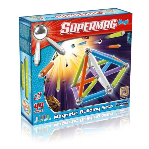 SUPERMAXI to klocki magnetyczne skonstruowana na bazie linii Supermag, składające się z kombinacji pałeczek i kulek. Ich największym atutem jest wielkość. Pałeczki są sporych długości 9,5 cm oraz 6,5 cm co pozwala tworzyć duże, okazałe budowle!
