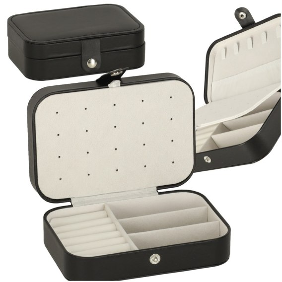 To stylowa kasetka na biżuterię w eleganckiej, klasycznej czerni z kontrastowym jasnym wnętrzem, która doskonale wpasuje się w wystrój każdej toaletki. To nowoczesna szkatułka, która łączy w sobie kompaktowy rozmiar z imponującą funkcjonalnością i zaskakującą pojemnością. Dzięki przemyślanemu układowi przegródek, haczyków i miejsc na pierścionki oraz kolczyki, pozwala wygodnie przechowywać różne elementy biżuterii, zapewniając jednocześnie bezpieczne przechowywanie nawet większej kolekcji dodatków. Idealny wybór dla miłośniczek biżuterii, które chcą połączyć styl, nowoczesny design i praktyczne rozwiązania w jednym organizerze.