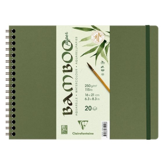 Wykonany w 100% z włókna bambusowego. Papier akwarelowy o barwie ciepłej bieli, delikatnie ziarnisty. Jego unikalna faktura pozwala na pokrycie obszarów jednolitą barwą jak również na rozmywanie kolorów. Podwójnie klejony (klejem na bazie roślin), dzięki czemu jest wysoce odporny na techniki mokre (nie marszczy się pod wpływem wody) i idealnie nadaje się do technik mieszanych (mix-media). Papier wegański.