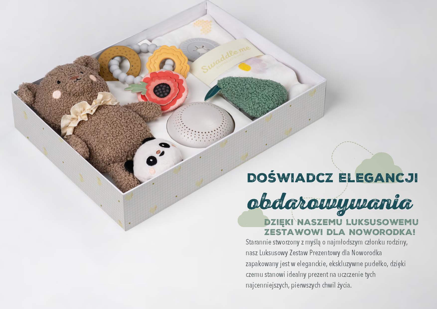 Luksusowy zestaw 0m+ z muzyką, przytulanką, otulaczem i gryzakiem - idealny na wyjątkowy prezent