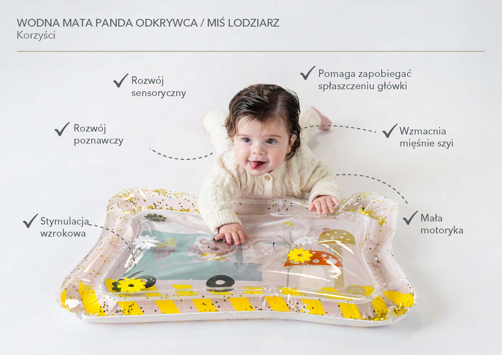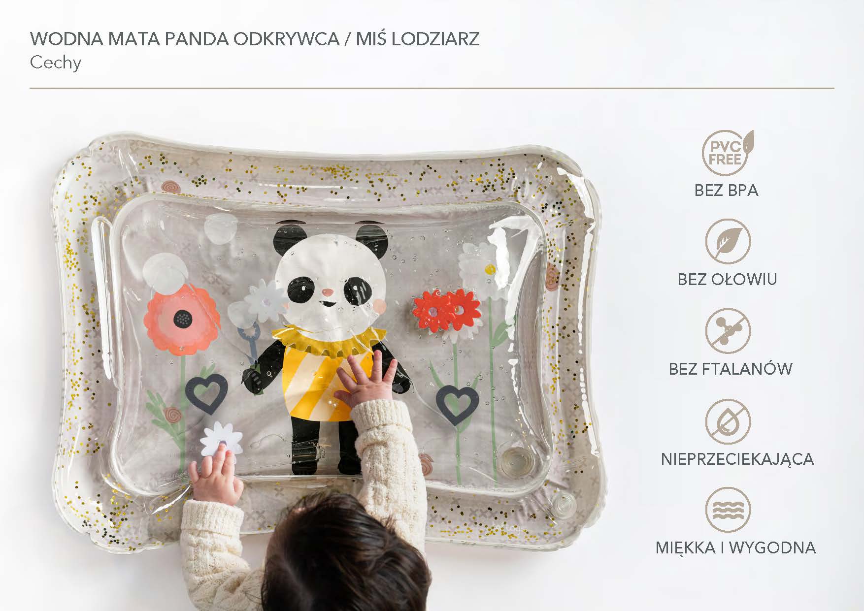 Zamień zwykły czas na brzuszku w kolorową przygodę! Taf Toys Wodna Mata - Panda Odkrywca to sensoryczna zabawka, która zachęca maluszka do ruchu, wzmacnia mięśnie i rozwija zmysły. Wypełniona wodą i pływającymi zabawkami mata pobudza ciekawość i zapewnia bezpieczne, relaksujące środowisko do zabawy. Idealna do ćwiczeń motorycznych i pierwszych kroków w poznawaniu świata! 💧🐾🌟