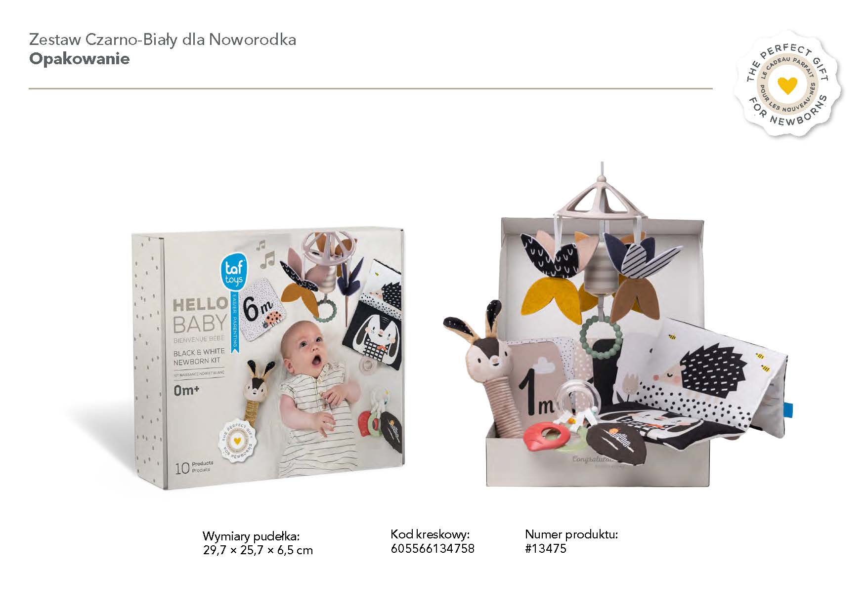 Poznaj idealny start dla najmłodszych 👶 - wyjątkowy zestaw Taf Toys Black & White to aż 10 starannie dobranych produktów w kontrastowych kolorach, które wspierają rozwój wzroku, motoryki, słuchu i emocji od pierwszych dni życia. Zabawki można używać razem lub osobno - w łóżeczku, w wózku, podczas zabawy na brzuszku i w czasie odpoczynku. Wszystko po to, by wspierać rozwój w naturalny i bezpieczny sposób.