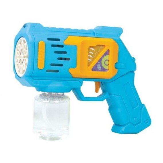 - wkręć butelkę z płynem do zabawki, a następnie naciśnij spust wyrzutni, a wystrzeli z niej strumień baniek;