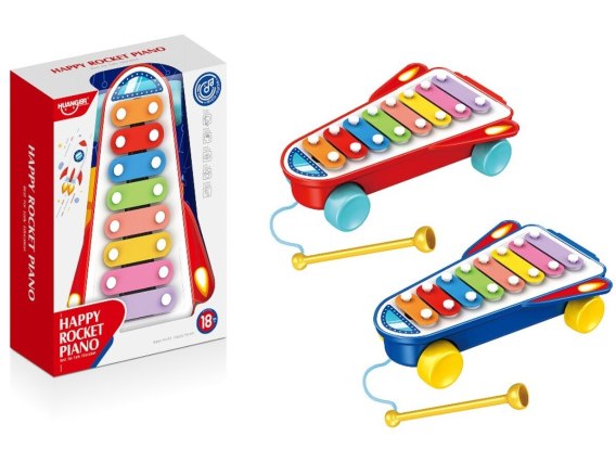 Nasze cymbałki to zabawka na kółkach, co umożliwia łatwe przemieszczanie się i możliwą zabawę zarówno w domu, jak i na świeżym powietrzu. Sam motyw rakiety kosmicznej dodatkowo zachęca do zabawy.