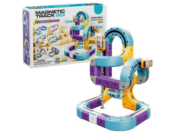 Prezentowany zestaw konstrukcyjny typu STEM pozwala na samodzielne budowanie torów, które wykorzystują przyciąganie magnetyczne, umożliwiając pociągom jazdę nawet w odwróconej pozycji.