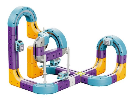 Prezentowany zestaw konstrukcyjny typu STEM pozwala na samodzielne budowanie torów, które wykorzystują przyciąganie magnetyczne, umożliwiając pociągom jazdę nawet w odwróconej pozycji.