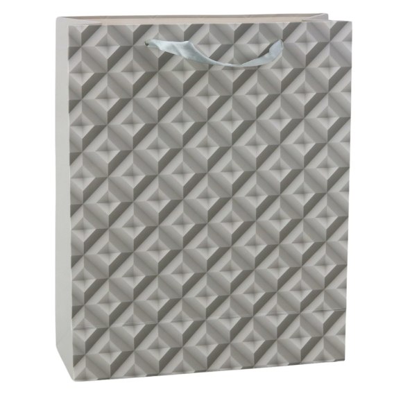 Torba Prezentowa Efekt Geometrii 3D Szara 32 x 26 x 10,5 cm
