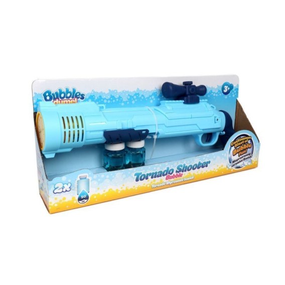Daj się wciągnąć w wir bąbelkowej zabawy! Z wyrzutnią Tornado, wyposażoną w płyn, wyczarujesz nieprzerwany strumień baniek. Aby przystąpić do zabawy, należy zasilić zabawkę bateriami, wkręcić pod lufę buteleczkę, zgodnie z obrazkową instrukcją z opakowania i pociągnąć za spust, aby z lufy wyrzutni wystrzeliły bańki! Do zestawu dołączone są aż dwie buteleczki płynu o pojemności 50 ml, a jeśli i ten zapas się wyczerpie, w ofercie Dumel Bubbles znajdziesz płyny o różnej pojemności, którymi można uzupełnić buteleczki. Z produktu należy korzystać na świeżym powietrzu.