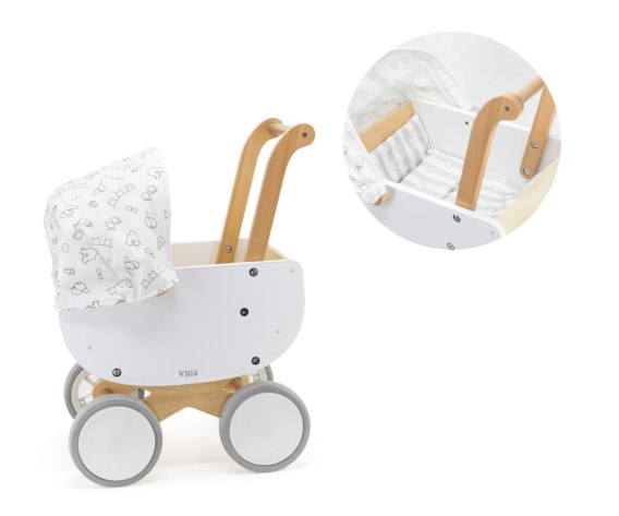 Drewniany wózek dla lalek z gondolą Viga 44719 PolarB to idealna zabawka dla dzieci, które uwielbiają opiekować się swoimi lalkami i pluszakami. Starannie wykonany z wysokiej jakości drewna, łączy w sobie funkcjonalność i estetykę w skandynawskim stylu. Idealnie sprawdzi się jako chodzik pchacz dla małego opiekuna.