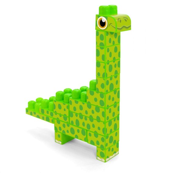 klocki występują w 4 wersjach: diplodok (17 elementów), triceratops (23 elementy), t-rex (24 elementów), stegozaur (14 elementów)