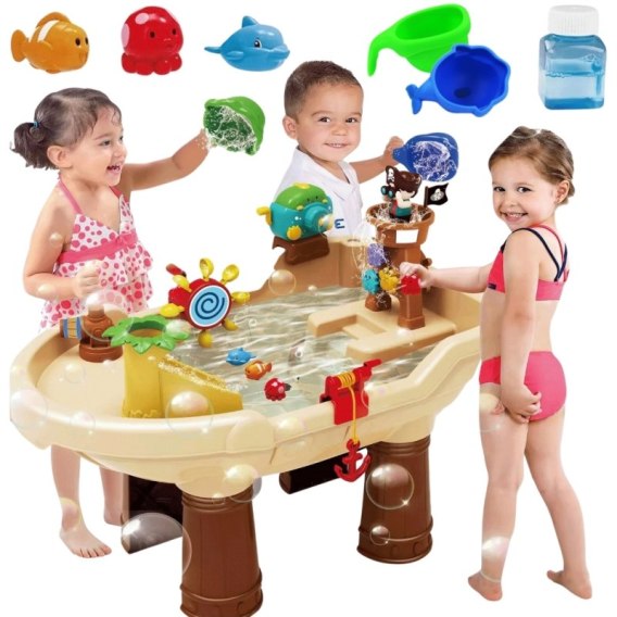 WOOPIE Stolik Wodny 2w1 Piaskownica Statek Piracki XL z Maszyna do Robienia Baniek Mydlanych
