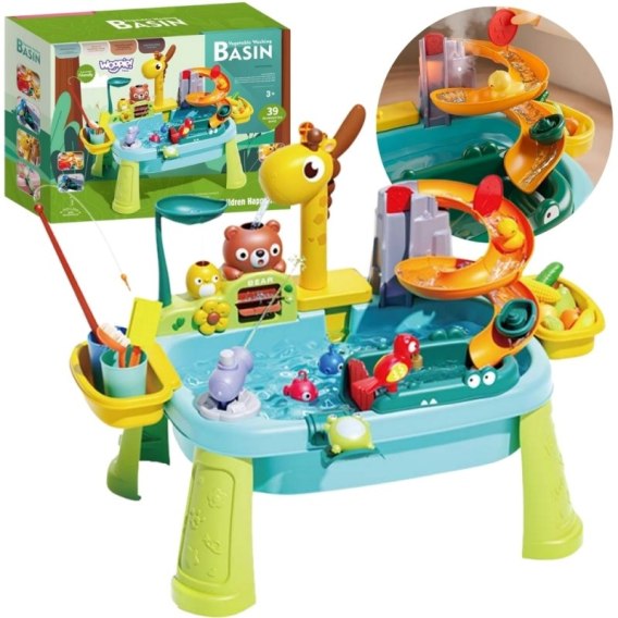 WOOPIE Stolik Wodny 4w1 Gra Łowienie Rybek Zlewozmywak Zjeżdżalnia Wodna Żyrafka