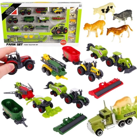 • WOOPIE Zestaw Traktorów i Maszyn Rolniczych z Zwierzętami