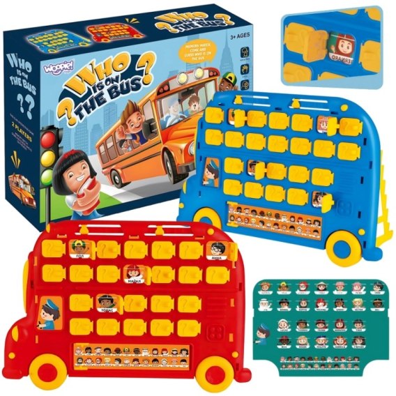 Zgadnij Kto od marki Woopie to gra dla całej rodziny, która powstała na bazie kultowego formatu "Zgadnij kto to?", ale w zupełnie nowym, atrakcyjnym wydaniu! Dzięki wyjątkowemu projektowi planszy w kształcie autobusu szkolnego, gra przyciąga uwagę najmłodszych i zachęca do logicznego myślenia, zabawy w zadawanie pytań oraz rozwijania pamięci, spostrzegawczości i komunikacji. Zabawa polega na odgadywaniu, jaka postać (człowiek lub zwierzę) znajduje się na karcie przeciwnika. W tym celu gracze muszą zadawać odpowiednie pytania i eliminować postacie, które nie pasują do udzielanych odpowiedzi. To nie tylko doskonała gra towarzyska, ale również narzędzie edukacyjne, które wspomaga rozwój intelektualny dziecka. Maluchy uczą się logicznego myślenia, formułowania pytań, podejmowania decyzji, koncentracji i wyciągania wniosków. Dzięki przyjaznej formie gra staje się pretekstem do wspólnego spędzania czasu w rodzinnym gronie. Gra to świetny pomysł na prezent, który zapewni długie godziny radości zarówno dzieciom, jak i dorosłym. Zabawka jest odpowiednia dla dzieci od trzeciego roku życia, a dzięki prostej mechanice, kolorowej grafice i trwałej konstrukcji z powodzeniem posłuży na wiele sezonów zabawy.
