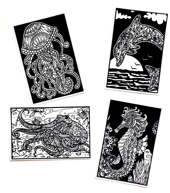 Specjalny papier sprawia że kolory są bardziej intensywne. Można kolorować flamastrami, kredkami, temperami, wszystkim co pisze po papierze. Można stworzyć rewelacyjne efekty za pomocą cieniowania.