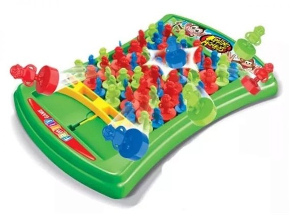 Zasady gry:Gra polega na wyciągnięciu pionków - małpek z planszy w taki sposób aby nie ruszyć pozostałych. Wydaje się proste ale to wcale nie takie łatwe, ponieważ pionki są mocno ściśnięte przez napierającą ściankę. Jeden nieostrożny ruch może spowodować gwałtowne ściśnięcie ścianki a co za tym idzie wystrzelenie wszystkich pozostałych pionków z planszy. |