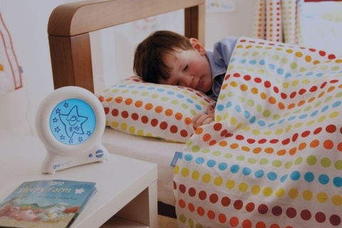 - Podświetlany ekran ukazuje obrazki gwiazd i słońca, a tym samym porę snu i porę wstawania