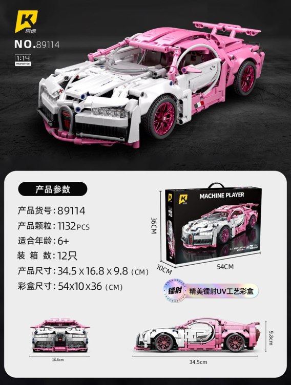 Wysokiej jakości klocki konstrukcyjne dla dzieci od szóstego roku życia. Zestaw składa się z 1132 elementów, z których zbudować można różowe auto sportowe. Ten wspaniały model samochodu z pewnością przyciągnie uwagę swoimi detalami.