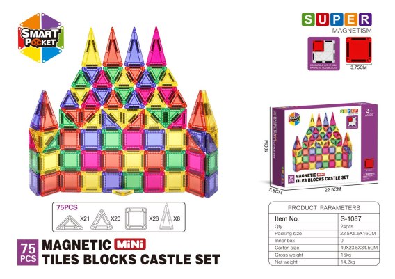 - 75 x klocek magnetyczny o różnych kształtach i kolorach. |