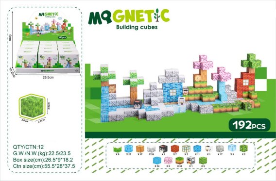 Zestaw 384 kolorowych klocków, magnetycznych kostek 3D dla dzieci od trzeciego roku życia. Klocki magnetyczne wykonano z najlepszej jakości materiałów w żywych kolorach. Można z nich zbudować różne konstrukcje. Magnesy neodymowe bardzo solidnie trzymają, tworząc stabilną konstrukcję. Układanie klocków uczy logicznego myślenia i ćwiczy rączki dzieci. W zestawie znajduje się 12 kartoników, a w każdym 32 klocki do budowy różnych konstrukcji.