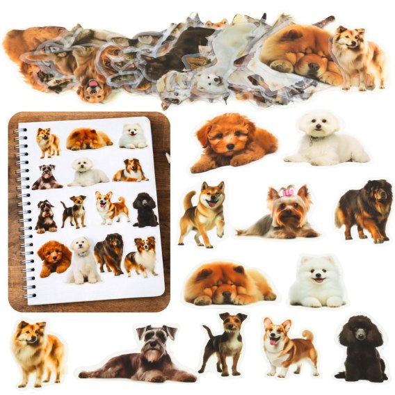 • Zestaw Naklejki Pieski Różne Gatunki Śliskie Przeźroczyste 50 szt.
