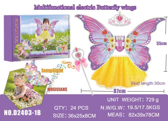 - skrzydła z efektem światła i dźwięku, - spódniczka, - różdżka, - korona. |