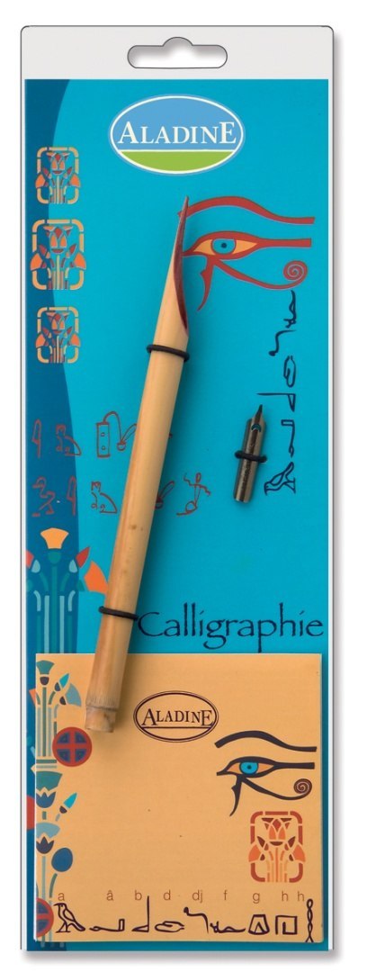 Zawiera: - 1 egipskie pióro trzcinowe (Calamus) - 1 stalówkę w tym samym stylu - ulotkę z alfabetem egipskim.