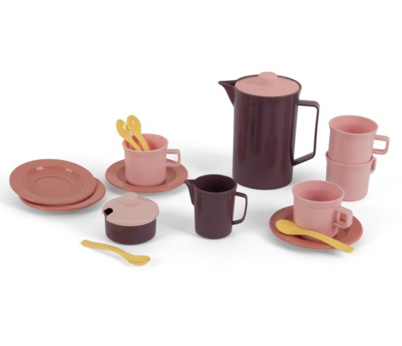Uroczy zestaw do zabawy w kawiarnię, herbatkę i spotkania przy stole, zaprojektowany z myślą o dzieciach, które uwielbiają odgrywanie ról i wspólne zabawy. Pastelowa kolorystyka i klasyczna forma elementów sprawiają, że zestaw świetnie sprawdzi się zarówno w domu, jak i na zewnątrz - w ogrodzie, na tarasie czy podczas zabawy w „piknik". W komplecie znajduje się wszystko, co potrzebne do stworzenia własnego „kawiarnianego" scenariusza: dzbanek do kawy z pokrywką, mlecznik, cukiernica z pokrywką oraz komplet dla czterech osób - 4 filiżanki, 4 spodeczki i 4 łyżeczki. Dzięki temu dziecko może serwować napoje pluszakom, rodzeństwu lub rodzicom, ucząc się przy tym dzielenia, komunikacji i budowania relacji w zabawie.