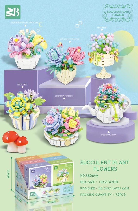 Wysokiej jakości klocki konstrukcyjne dla dzieci od szóstego roku życia. Zestaw składa się z 253 elementów, z których zbudować można kwiaty w doniczce, a potem wręczyć go bliskiej osobie lub postawić jako ozdobę. Ta wspaniała kompozycja kwiatów powstała z klocków z pewnością przyciągnie uwagę swoimi detalami.