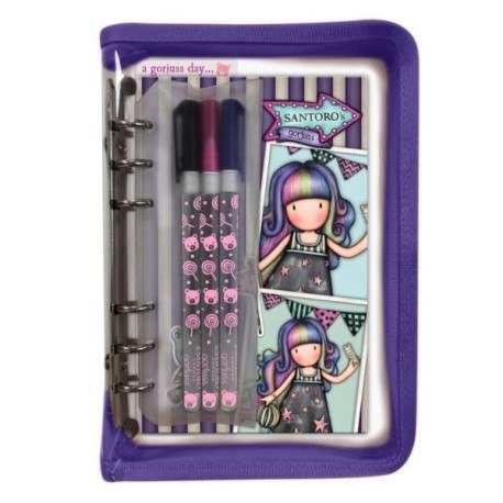 Zestaw Przyborów Szkolnych, Organizer - Gorjuss - Up and Away Firma Santoro London to producent niepowtarzalnych produktów, które zachwycą każdą dziewczynkę i niejednego dorosłego! Marka znana jest na całym świecie, a produkty sprzedawane są w najbardziej znanych i prestiżowych butikach . W najpopularniejszej z ich kolekcji - Gorjuss - znajdziecie przepiękne torebki, portfele oraz portmonetki, oryginalne artykuły papiernicze (notatniki, pamiętniki, długopisy, ołówki) oraz niepowtarzalne lusterka, balsamy do ust, szkatułki i wiele więcej! Kolekcja Gorjuss to wspaniały pomysł na wyjątkowy prezent z każdej okazji! Charakterystyka Fantastyczna seria Up and Away ozdobiona jest grafiką dziewczynki Gorjuss, utrzymana w kolorach głębokiego fioletu. Na odwrocie fajerwerki, kolorowe girlandy, cukrowa wata - wszystko co znajdziemy w wesołym lunaparku. Zestaw przyborów szkolnych zapakowanych w przezroczysty piórnik zapinany na specjalny suwak. Wewnątrz znajduje się kołonotes z 80 kartkami ozdobionymi dekoracyjnym nadrukiem. Na każdej stronie znajduje się miejsce na datę, godzinę oraz notatki dzięki czemu może pełnić funkcję organizera czy dziennika. Ponadto: 3 długopisy - granatowy, różowy i czarny, umieszczone w kieszonce na suwak. Dodatkowo - linijka mogąca pełnić funkcję zakładki. Wymiary: 15 cm x 21,5 cm x 2,5 cm. Zabawna kolekcja Fairground pełna plecaków, akcesoriów i artykułów papierniczych, która nawiązuje do tajemniczych przygód przeżytych w Wesołym Miasteczku. Nie brak tu fajerwerków, karuzel, beczek śmiechu, huśtawek i zdobywanych nagród. Zabawne pompony, słodkie wzory, czy metalowe zawieszki przeniosą nas do barwnego świata Santoro, pełnego niespodzianek. To kolekcja, którą będziemy cenić przez wiele lat. Podążaj za dziewczynami, bohaterkami 4 serii: Up & Away, Fireworks, Carusel i First Prize i odkrywaj ekscytującą kolekcję pełną cudownych smakołyków! 1137GJ04