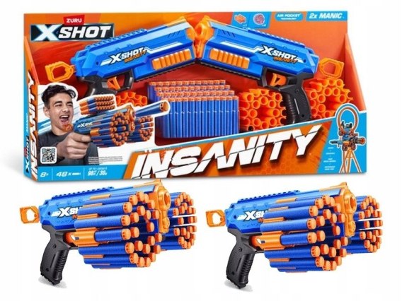 Zuru X-Shot PISTOLETY Insanity Double Manic AIR POCKET to doskonały wybór dla entuzjastów dynamicznych gier i zabaw na świeżym powietrzu.