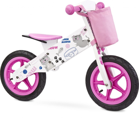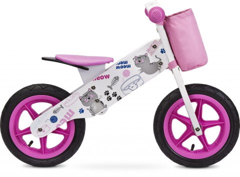Drewniany rowerek biegowy ZAP Toyz do 30kg przedział 3-6 lat pink kotek